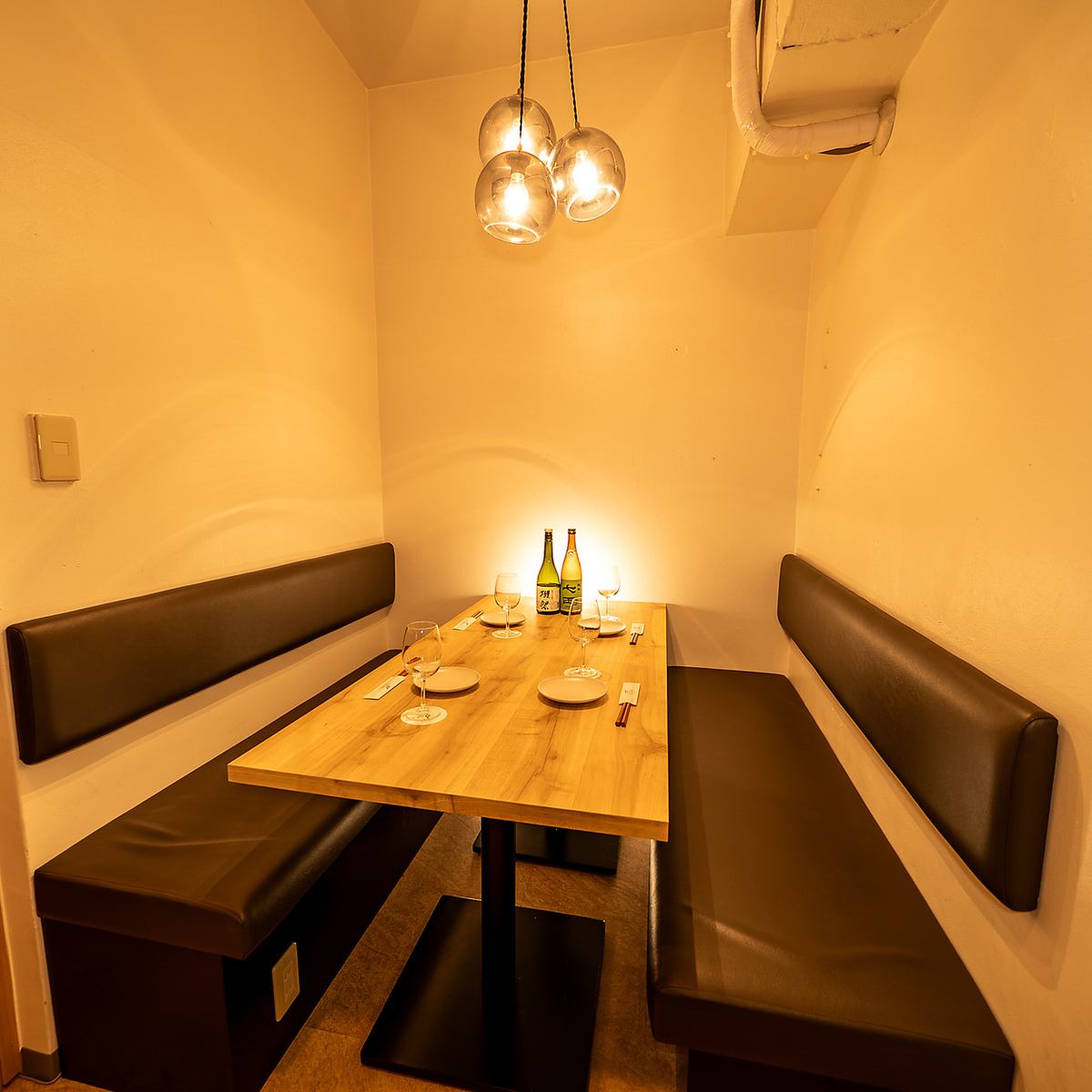 2~4名で利用できる少人数向けの席は、程よい距離感で会話が弾むつくりになっています。明るすぎず暗すぎない照明が心地よく、食事の色味をきれいに引き立ててくれるのも魅力。友人との食事はもちろん、ちょっとしたお祝いの食事や仕事帰りの軽い会食にもおすすめです。