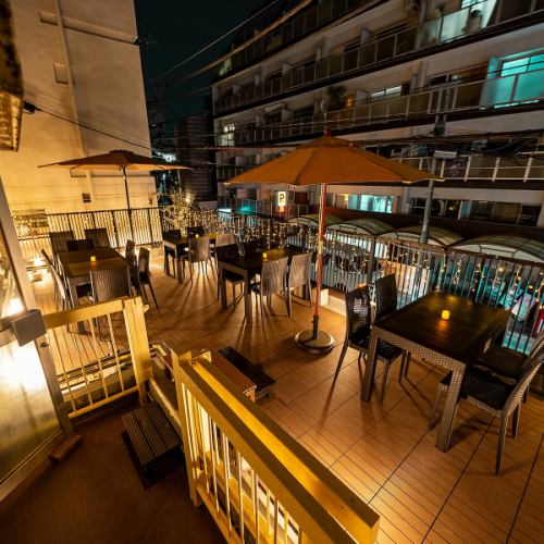 開放感を味わえるテラス席は、外の空気を感じながらゆったり過ごせる特別な空間です。暖かい季節はもちろん、夜風が心地よい時間帯は食事やドリンクがさらに美味しく感じられます。木の質感と柔らかな灯りが合わさり、外でも落ち着いた雰囲気で過ごせるのが魅力。